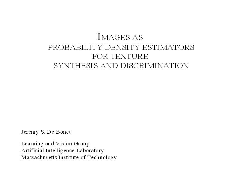 Jeremy S. De Bonet : Images As Probability Density Estimators For Texture Synthesis And Discrimination +1/26